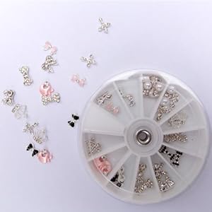 350buy 350buy 24pcs 12 Different Shapes styles 3D Clear Alloy Rhinestones Bow Tie Cross Buttefly Crow Apple Nail Art DIY Decorations+Wheel