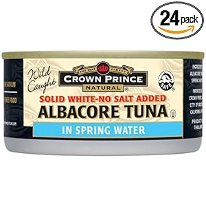 Crown Prince Natural Solid White Albacore Tuna In Spring Water, No Salt Added, 6-Ounce Cans (Pack of 24)