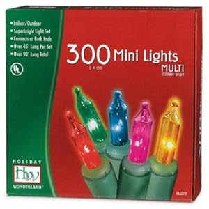 Indoor/outdoor 300 Multi Color mini-lights (Two 150-light strands) 78' Total Length Green wire 24" lead wire 3" end connector B